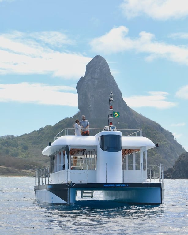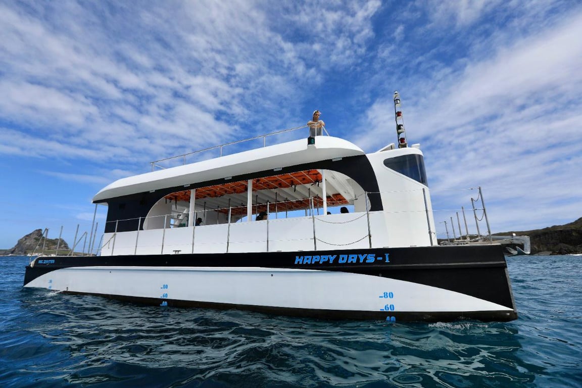 O passeio Happy Days Noronha: PASSEIO CATAMARÃ HAPPY DAYS I em Fernando de Noronha é uma experiência inesquecível. O passeio começa passando pelas ilhas secundárias como a Ilha São José, Ilha do Cuscuz, Ilha Rata, Ilha Sela Gineta e Ilha do Meio. Em seguida, o catamarã costeia todas as praias do mar de dentro, incluindo Praia da Biboca, Praia do Cachorro, Praia do Meio, Praia da Conceição, Praia do Boldro, Praia dos Americanos, Praia do Bode, Praia Cacimba do Padre, Baía dos Porcos e a famosa Praia do Sancho, onde temos uma parada de 40 minutos para mergulho.